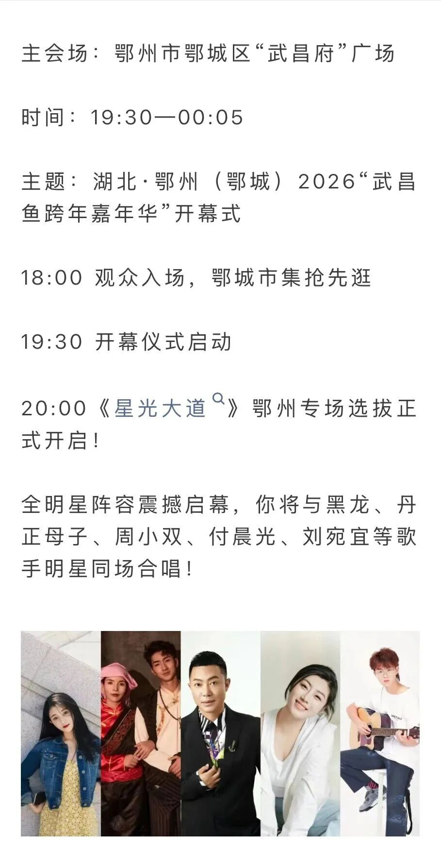 17:15-17:45 开车前往鄂州市鄂城区“武昌府”广场(湖北·鄂州(鄂城)2026“武昌鱼跨年嘉年华”开幕式现场)